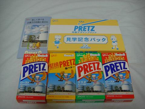 お土産売場で工場生産のプリッツ3個入りを購入。