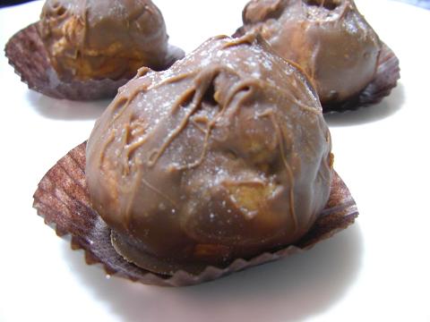 外はコーティングしたチョコが固まってパリっとした食感、中はトロリとした生チョコクリーム。